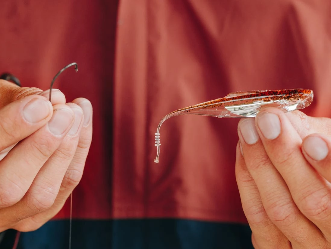 The upgraded Shimmer Shad has a new design profile and comes in additional colorways. It draws in curious predators by reflecting light. It cascades down the water column like a dying baitfish. A decadent choice when you need to finesse a deep bite.
