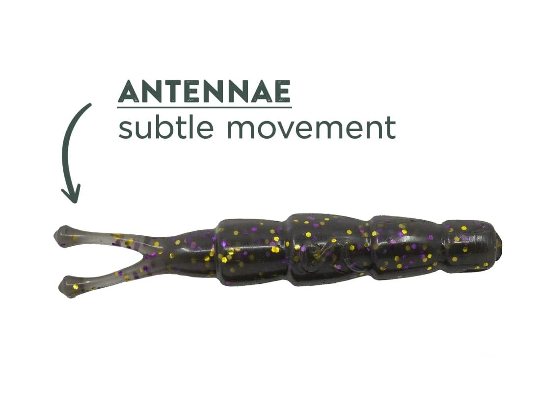 Best deployed on a ned rig. Drag and hop along the bottom to create slight, subtle movement from the antennae to stimulate picky predators. The segmented body can be shortened if needed.