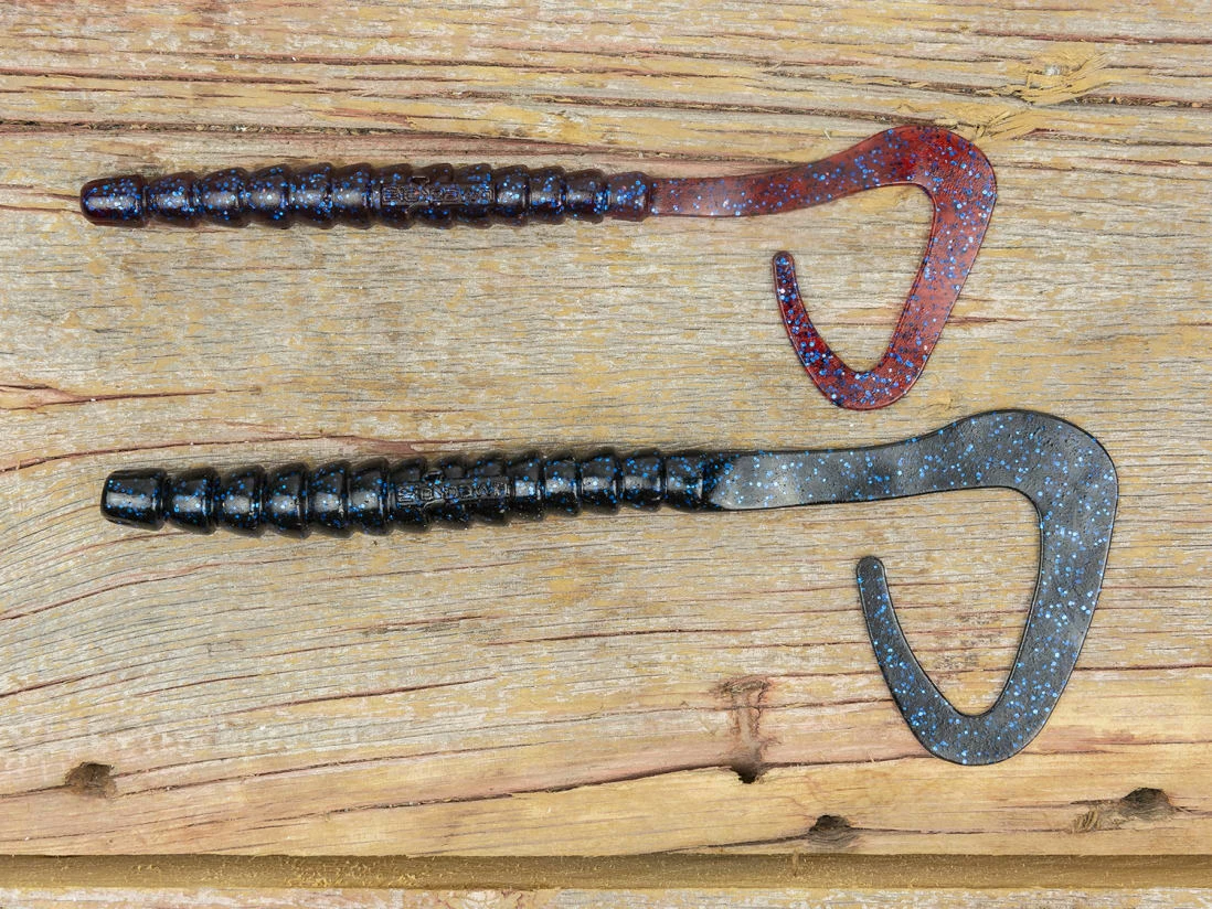 Pro Tips: Use the ExoRibbon when looking for a worm with lots of action, make sure to bury the hook point back into the body to prevent snags. When fishing it weightless, utilize a stop & go method to bring it past vegetation and any other structure. When bottom fishing it on a Texas or Carolina rig, hop or drag it along the bottom. Be sure to set the hook well, as the hook point has to go through the plastic and then penetrate the bass’ mouth.
