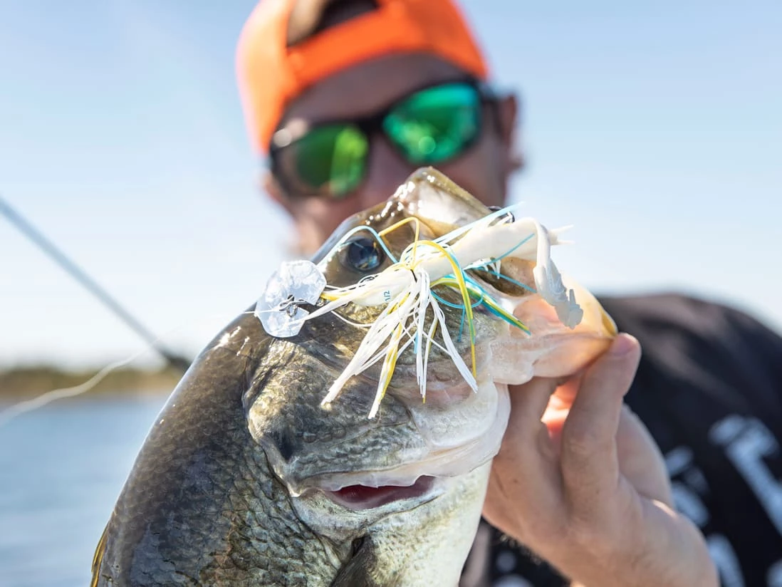 – An oversize blade that helps keep the Clickbait riding deeper in the water column while imparting max swimming action on your soft plastic trailer