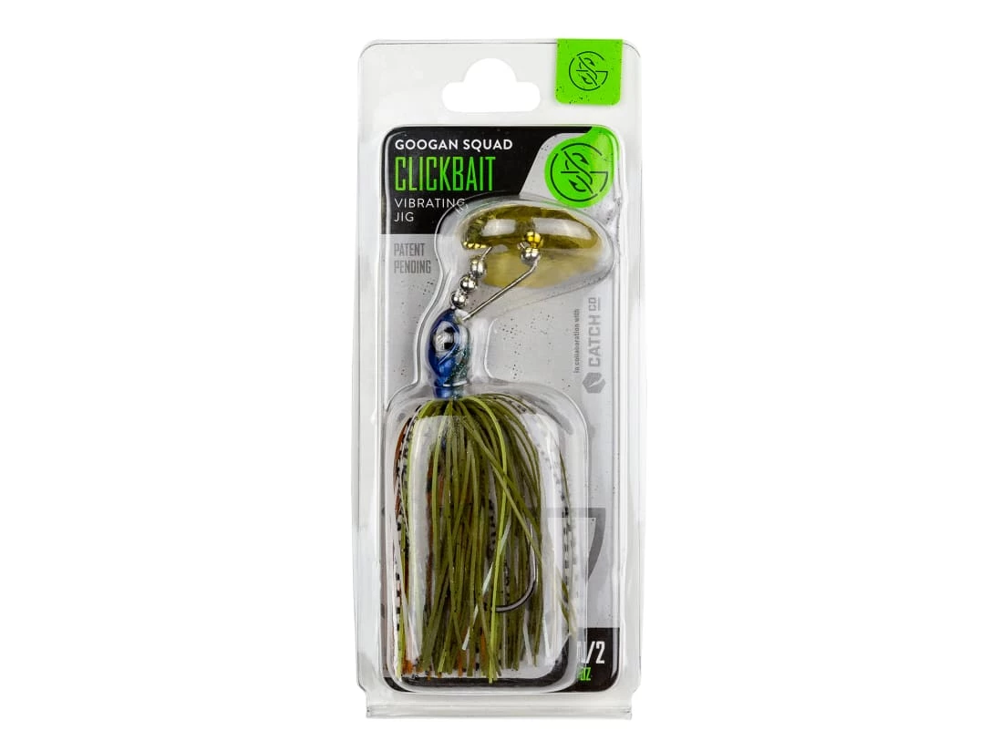 The Googan Squad Clickbait is a hybrid vibrating jig with the flash of a bladed jig, the swimming action of a scrounger, and unique vibration and flash that fish have never felt. Listen for the distinctive Clickbait clack when the lure’s blade bangs off the leading metal blade and wire.