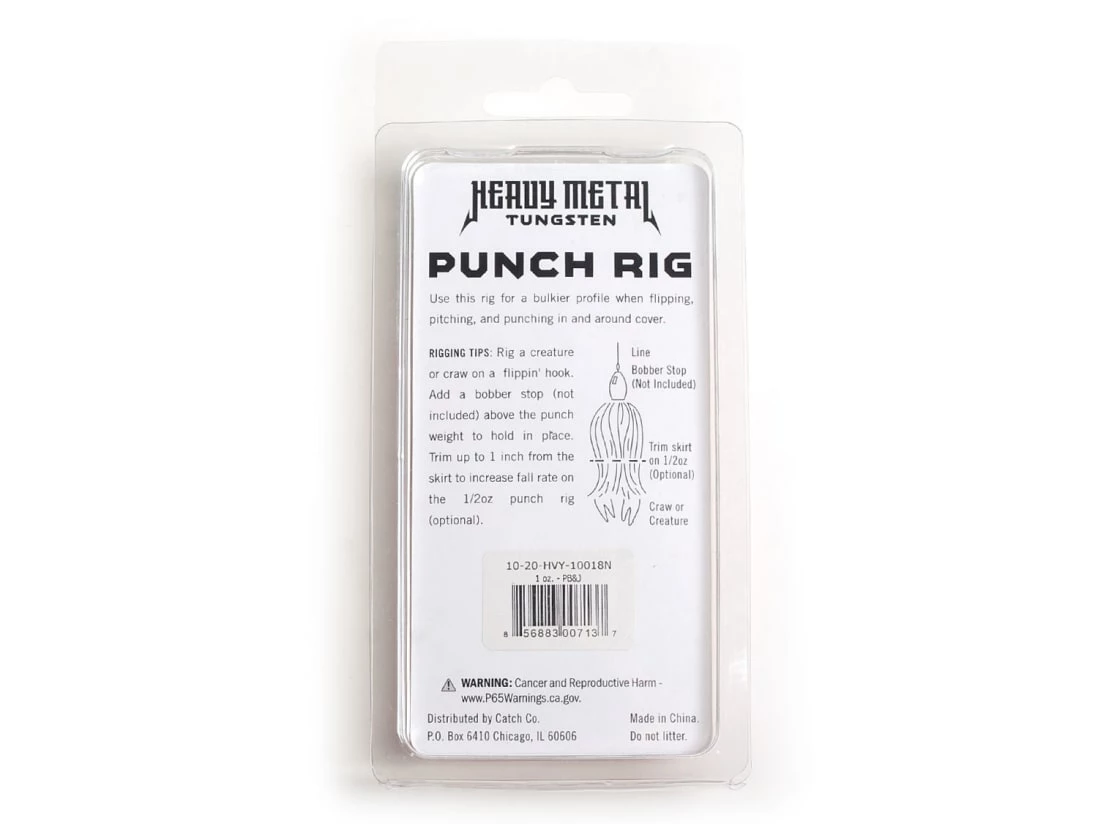 The Heavy Metal Tungsten Punch Rig was designed to beef up the profile of your typical Texas rig while maintaining complete weedlessness. Made from high quality Tungsten, this product is 100% lead free. Add this rig above a stout flipping hook and creature bait for a presentation unlike any other. Throw this into heavy cover to trigger big strikes from fish waiting to ambush a meal.