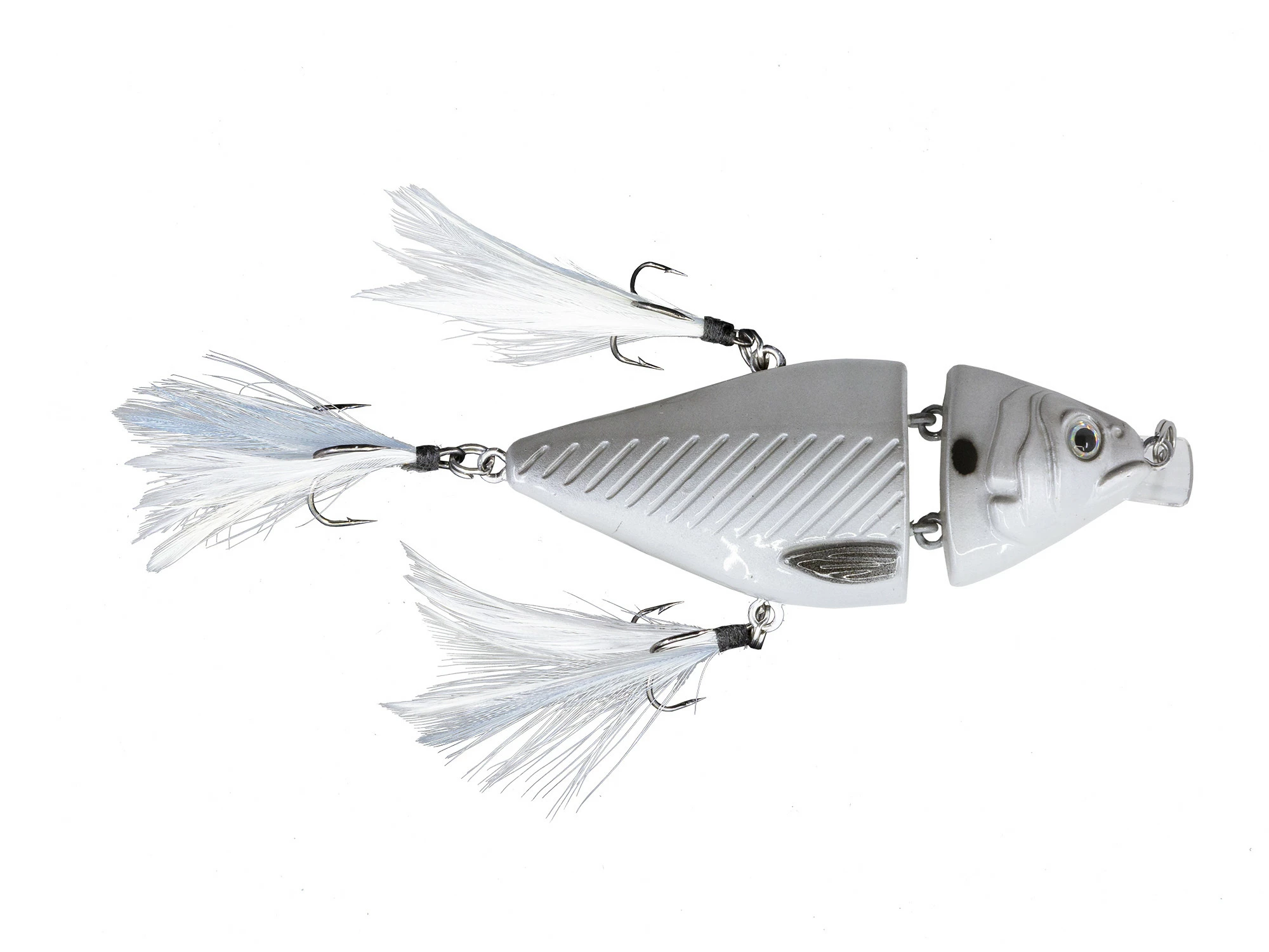 The Lunkerhunt Easy Prey is a jointed swimbait with a look and action that fish can’t ignore. The single-jointed body has a perfect baitfish profile and moves like the real thing. It runs 1′ deep and when you pause it, the bait slowly floats up, enraging nearby predators. Feather attractors dressing dangerously sharp treble hooks create additional eye-catching movement.