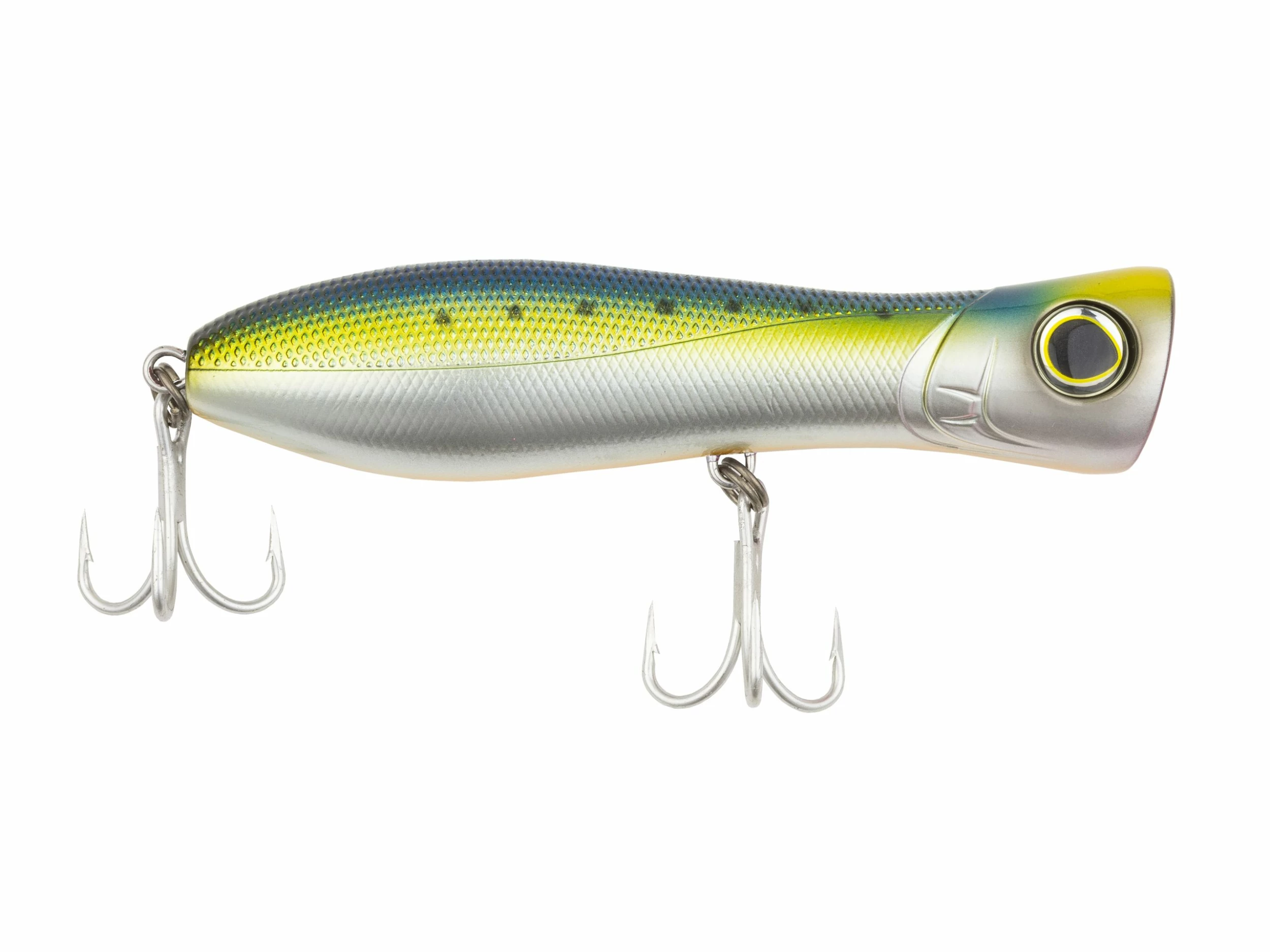 The Yo-Zuri Bull Pop is a saltwater-grade topwater bait that triggers explosive strikes from countless species, inshore and offshore. It’s weighted so you can cast it a mile, and the Bull Pop’s large cupped mouth causes a loud, splashing display that draws fish in from far away. Enlarged eyes and a molded-in scale pattern combine with color-changing finishes and a flared, fish-like profile to create an incredibly attractive target for chasing predators. You can select from two sizes and a wide range of popular color patterns. This bait is built to last, featuring stainless steel wire-through construction and 3X strong trebles and split rings. Add the dazzling and durable Yo-Zuri Bull Pop to your saltwater arsenal!